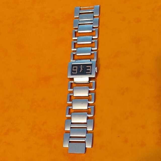 Detalles del productoReloj de marca Festina realizado para mujer. Movimiento de cuarzo analógico, caja rectangular de acero, cristal mineral y pequeña esfera de color negro. Tiene una pulsera de acero ancha. En general se encuentra en buenas condiciones, exceptuando la zona de agarre de la pulsera, que habría que ajustarla de nuevo al gusto de cada uno, ahí se debe el precio reducido. Escucho ofertas.