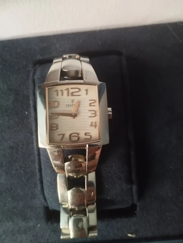 Elegante reloj de señora de la marca Festina. Funciona perfectamente. Caja original. - Diseño moderno y sofisticado. - Brazalete metálico. - Esfera con números.