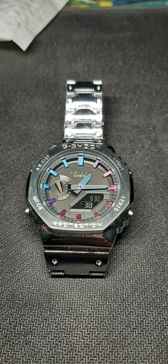 Reloj G-Shock Casio con diseño moderno y multifuncional. - Esfera analógica y digital. - Correa metálica. - Bisel octogonal.