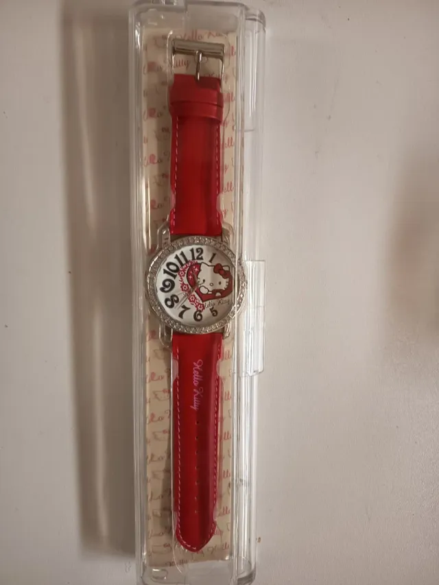 Reloj Hello Kitty Correa Roja y Bisel Plateado