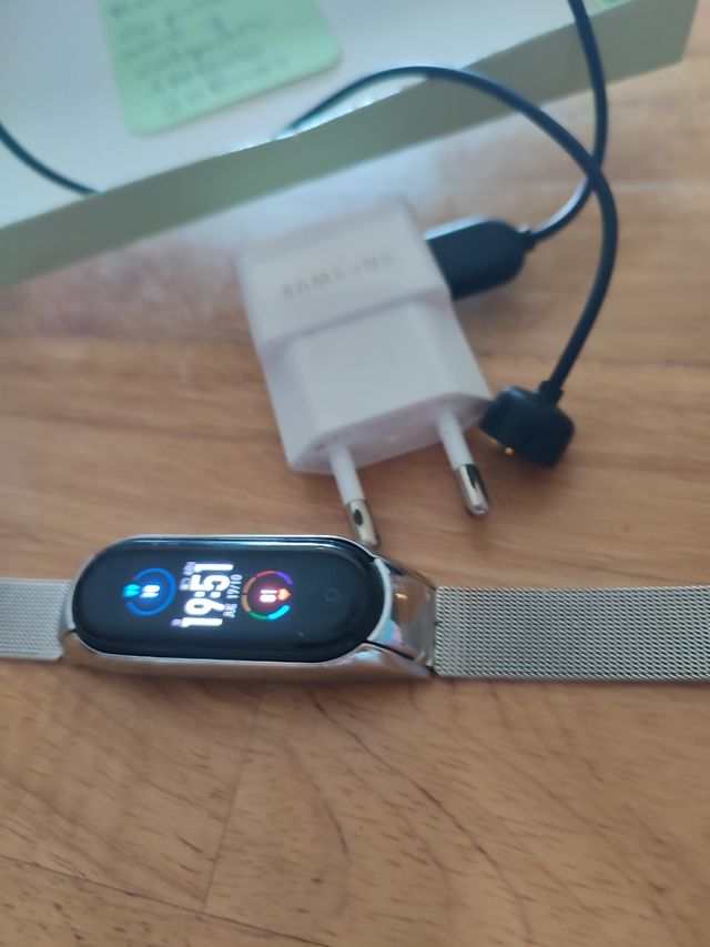 Reloj inteligente marca pasos y tiene su cargador de Samsung con pulsera de acero buenas condiciones poco uso