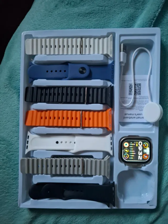 Set de reloj inteligente con varias correas intercambiables para personalizar tu estilo. Incluye cargador.