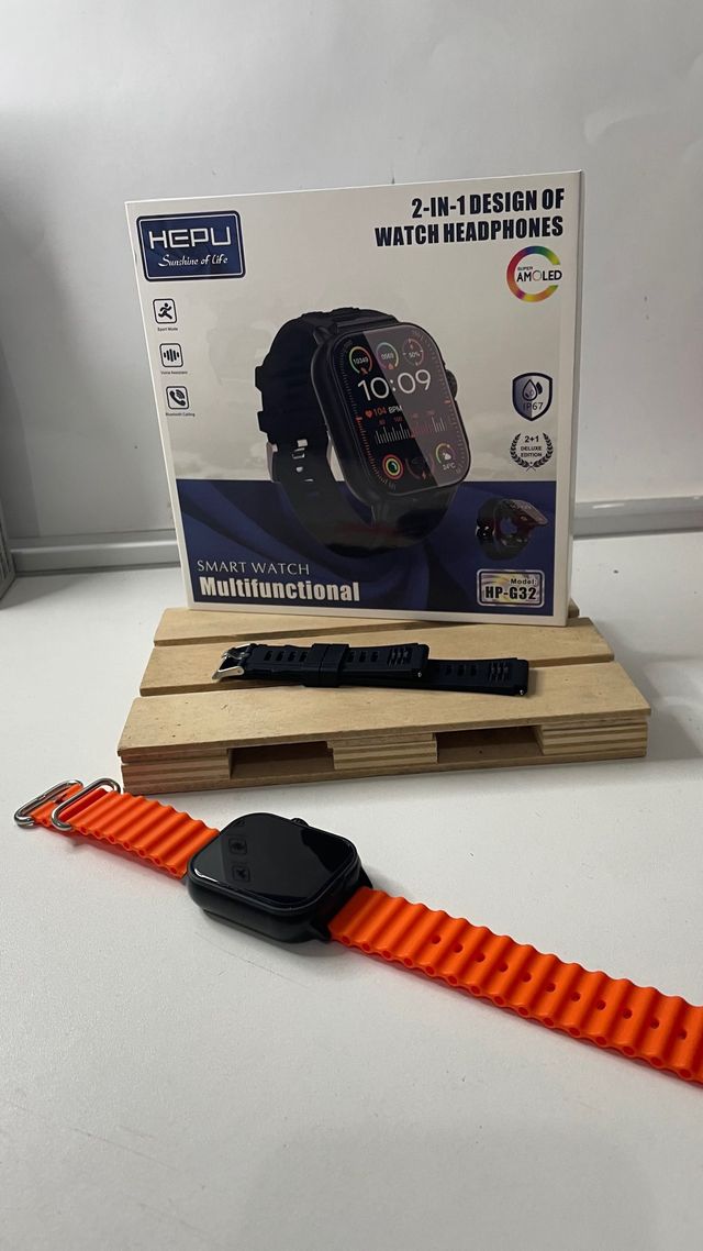 Reloj inteligente multifuncional HEPU con diseño 2 en 1. - Pantalla AMOLED. - Modelo HP-G32. - Incluye correa negra y naranja.