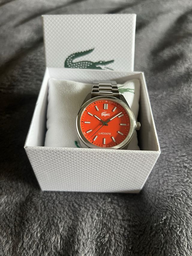 Reloj Lacoste Original Naranja y Plateado