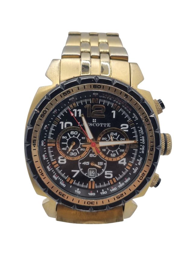 RELOJ LANSCOTTE CHRONOGRAPH DORADO Y NEGRO CORREA METALICA