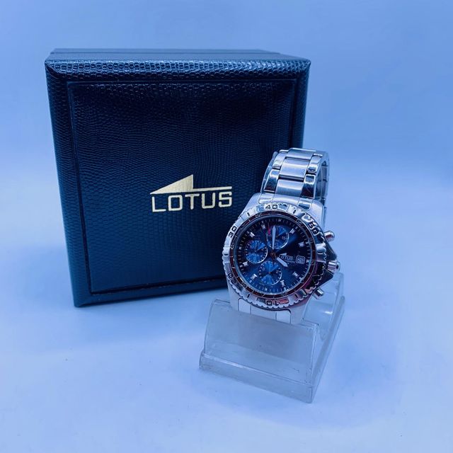 Detalles del producto03-U607706 Buen estado, con pequeñas humedades en la esfera que apenas se perciben. Incluye caja. Reloj de pulsera analógico de la marca Lotus con diseño clásico, movimiento de cuarzo y funciones básicas de hora, minutos, segundos y calendario. 3 años de garantía. Disponible sólo para envío mediante wallapop o compra directa en nuestra web realcash. es. Enviamos a toda España excepto Canarias, Ceuta y Melilla.