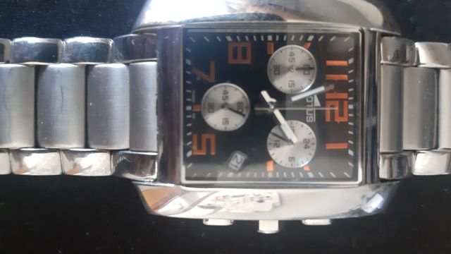 Detalles del productoReloj Lotus modelo 15256 con cronógrafo y fondo negro con números en naranja. Hecho de acero inoxidable y resistencia al agua 5 ATM.