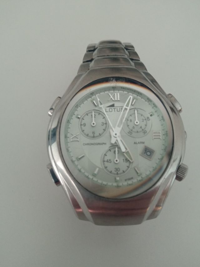 reloj Lotus con correa y caja de acero , cierre en clip , esfera blanca