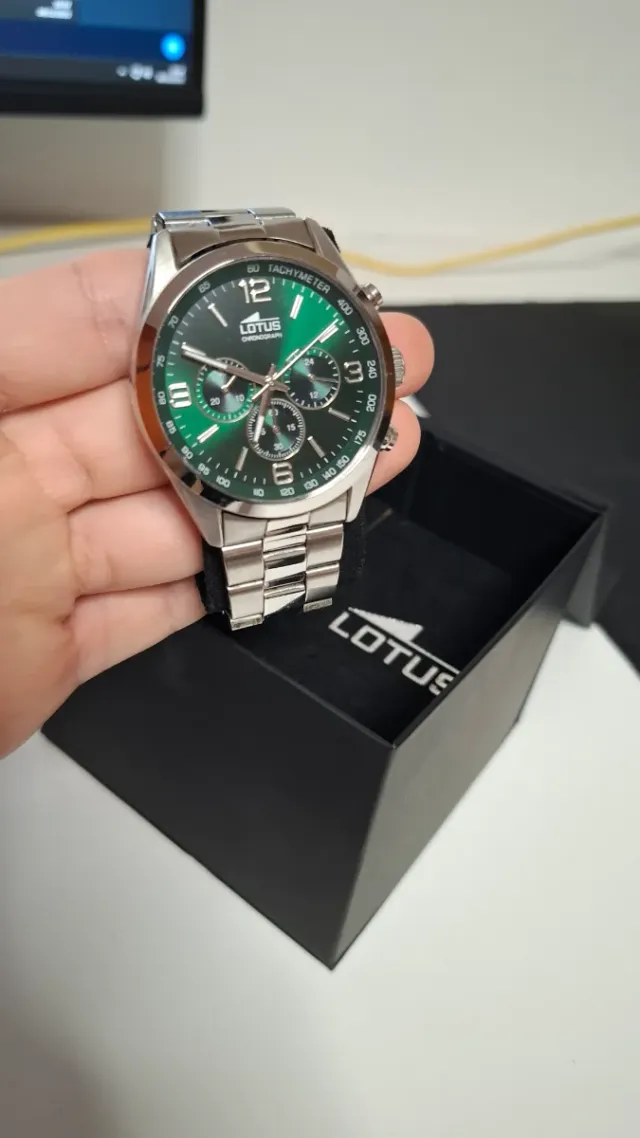 Reloj Lotus Cronógrafo Verde y Plateado