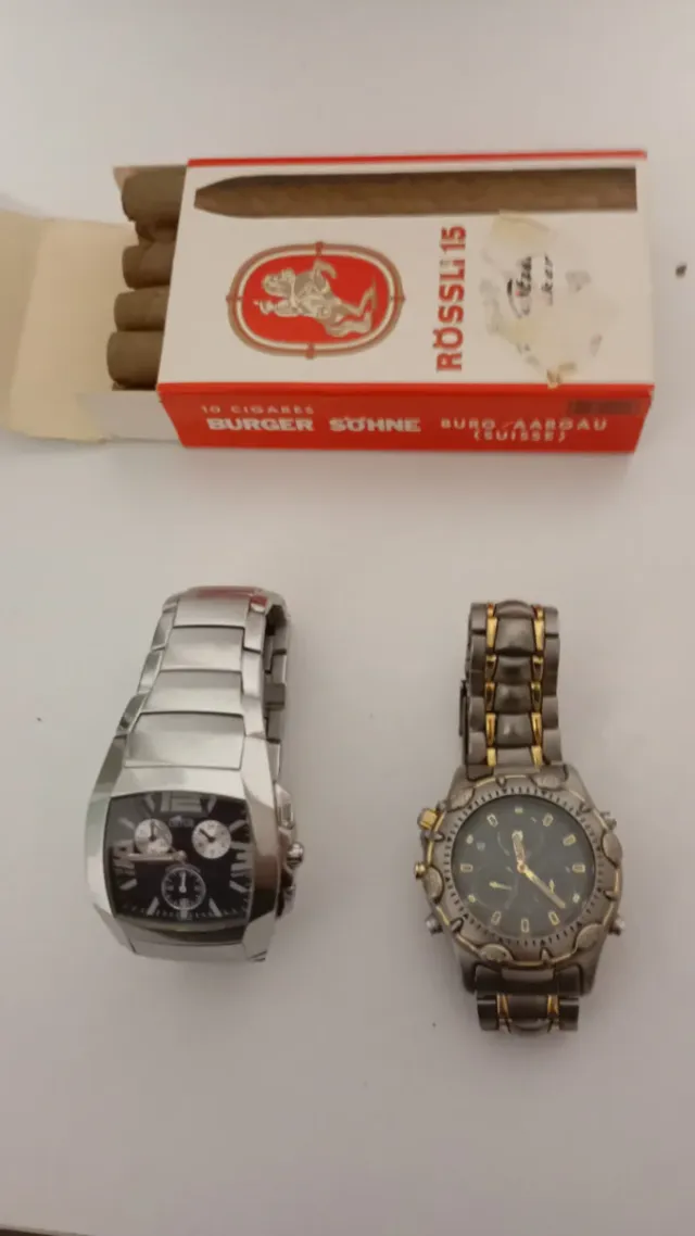 Reloj de pulsera para hombre de la marca Lotus. Diseño moderno y elegante. - Correa de metal plateado. - Esfera negra con detalles plateados y dorados. - Múltiples subesferas.