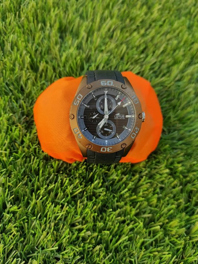 Reloj Lotus Hombre esfera color bronce y correa negra de silicona