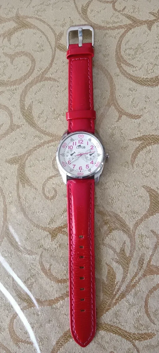 Reloj Lotus Mujer Correa Roja y Detalles Rosas