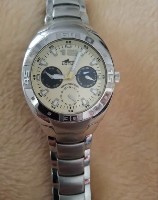 Reloj Lotus Multifunción Beige y Plateado