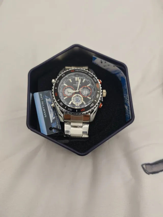 Detalles del productoElegante reloj de la marca Martyn Line con detalles en negro y plateado. Presenta una esfera con múltiples subesferas y un diseño deportivo.