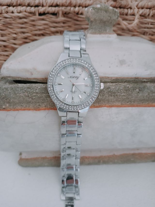 Reloj NARY Mujer Plata y Blanco con Circonitas