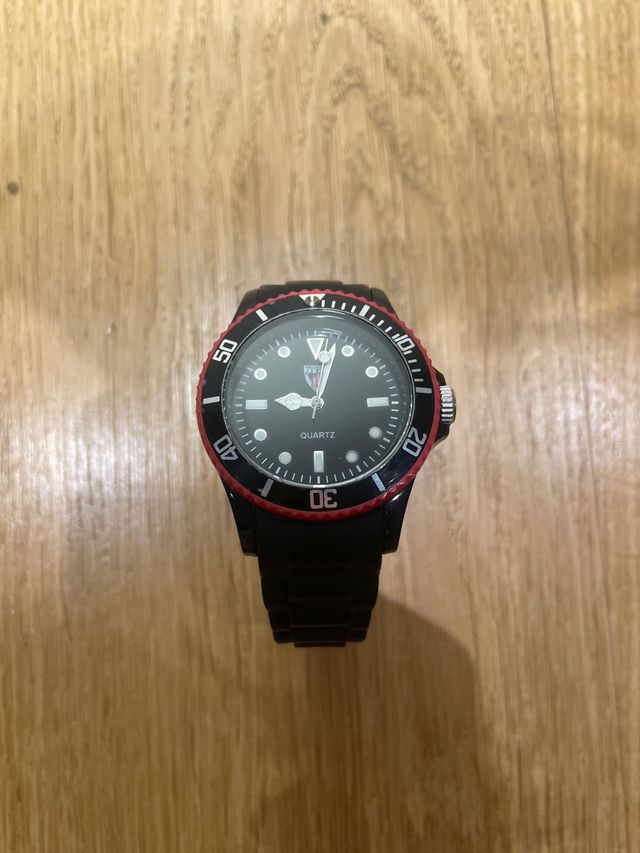 Reloj Negro con Correa Negra y Roja