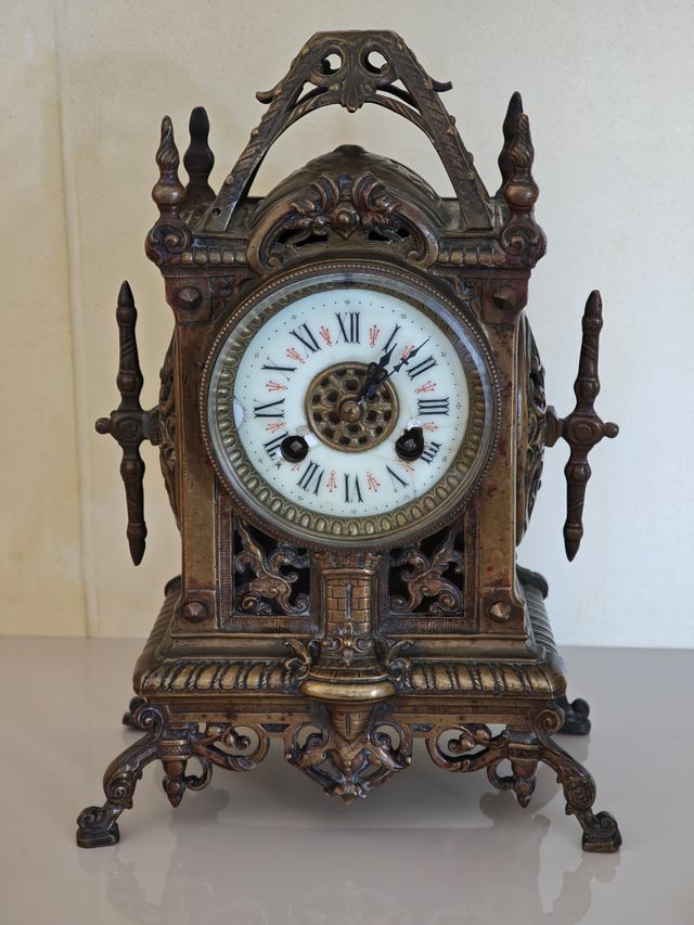 Detalles del productoPrecioso reloj de sobremesa de bronce, que data aproximadamente de 1880, período segundo Imperio de Napoleón III. Neogótico.