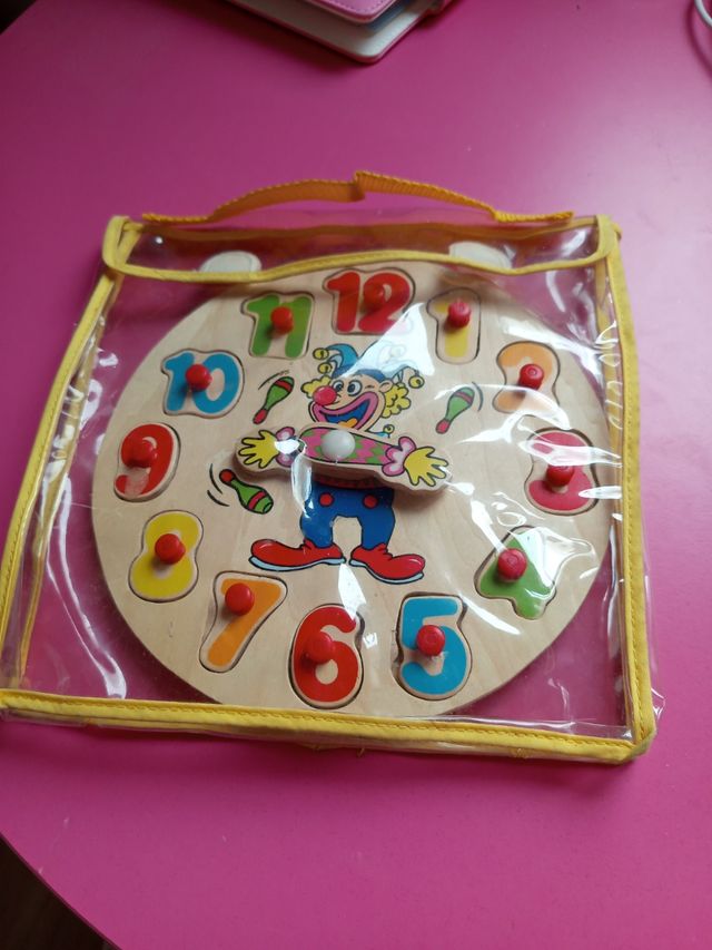 Detalles del productoJuguete educativo de madera para niños, en perfecto estado. Ideal para aprender las horas de una forma divertida.