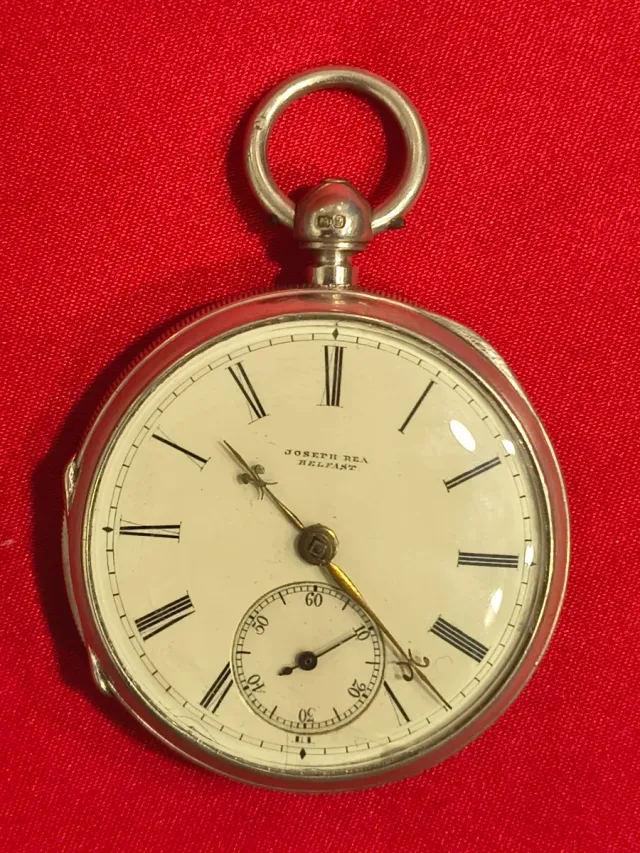 Detalles del productoReloj de bolsillo antiguo de plata de Joseph Rea, Belfast, de 1898. Un objeto de colección con un diseño clásico.