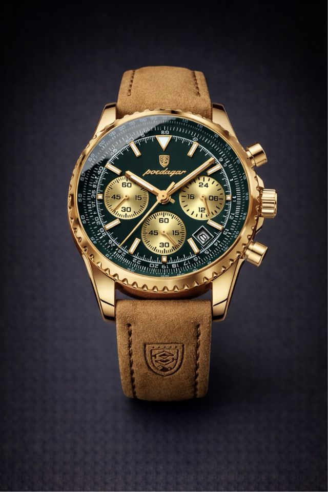 Reloj Poedagar Cronógrafo Dorado y Verde