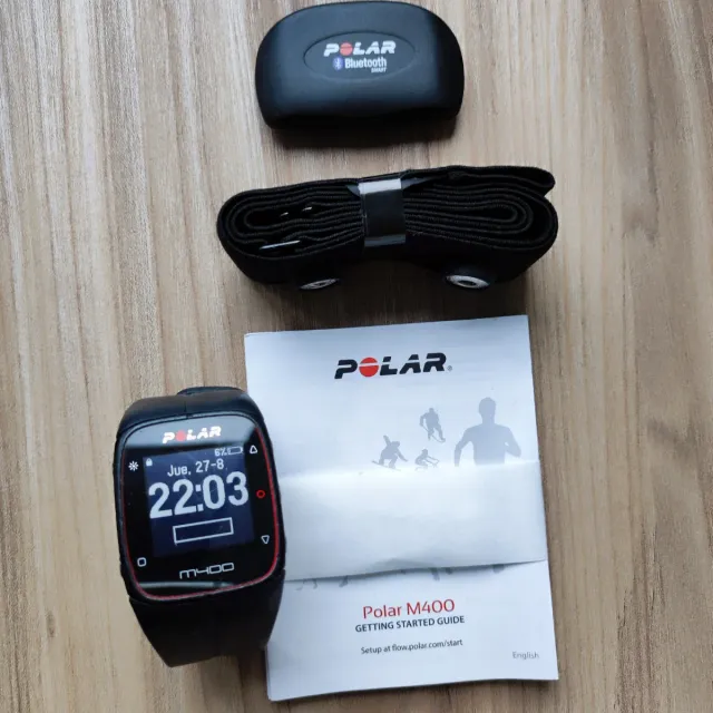 Se vende reloj deportivo Polar M400 en color negro, junto con su banda pectoral. - Reloj Polar M400. - Banda pectoral Polar. - Guía de inicio rápido.