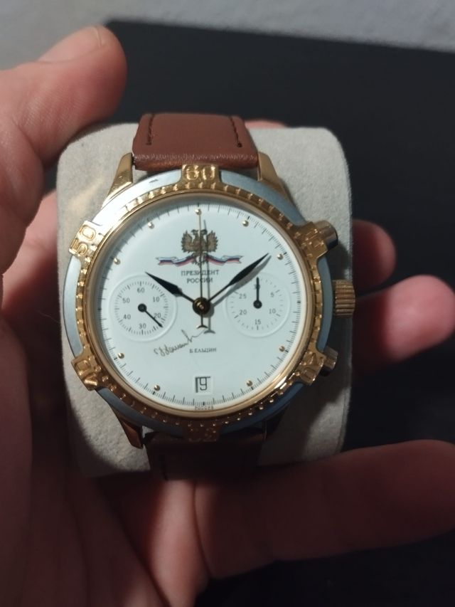 Exclusivo cronógrafo producido por Poljot y dedicado al presidente Boris Yeltsin, cuya firma está en la esfera. No0020/1000.