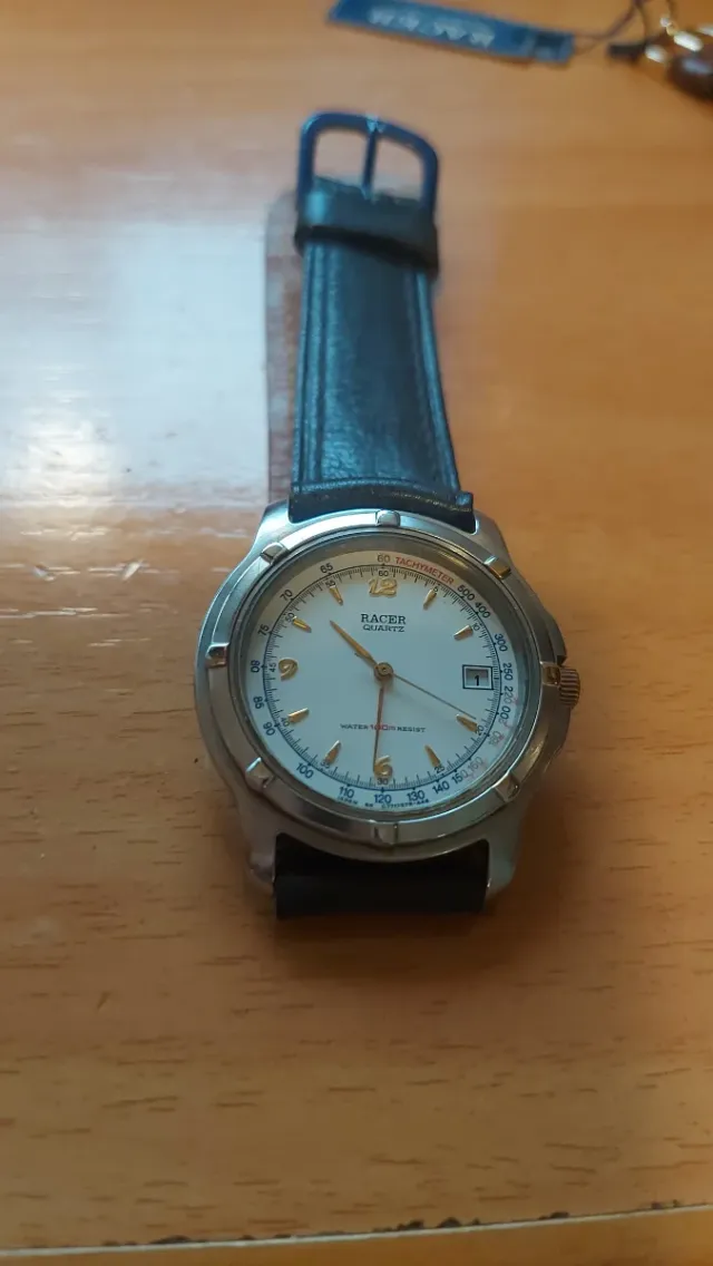 Reloj Racer Cuarzo Esfera Blanca Correa Negra