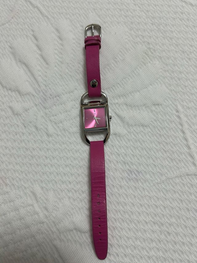 Reloj rosa con correa de cuero