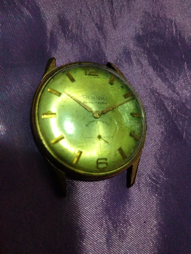 Reloj de pulsera Rosbu. - Esfera de color verde. - Diseño clásico con detalles dorados. Le falta la corona nose si funciona