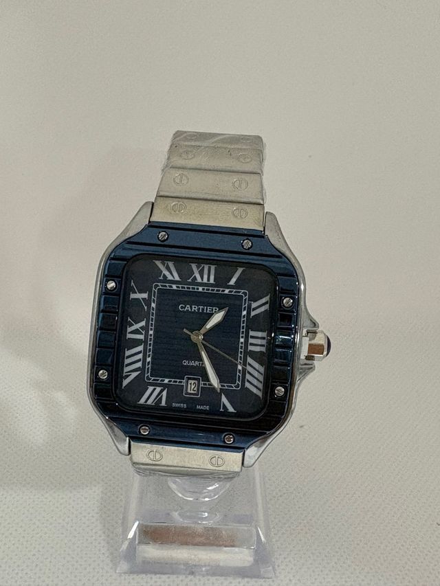 Reloj Cartie santos con diseño deportivo y elegante. - Esfera azul con números romanos. - Correa de acero - Ventana de fecha. - Movimiento meca - quartz