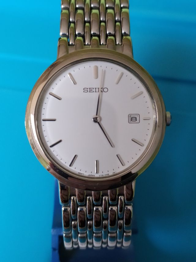 Detalles del productoMagnífico reloj SEIKO EXTRAPLANO, dial blanco, calendario, plexiglás impecable, armis original Seiko, en un estado de reestreno, colección propia, ver resto de relojes en venta en mí perfil.