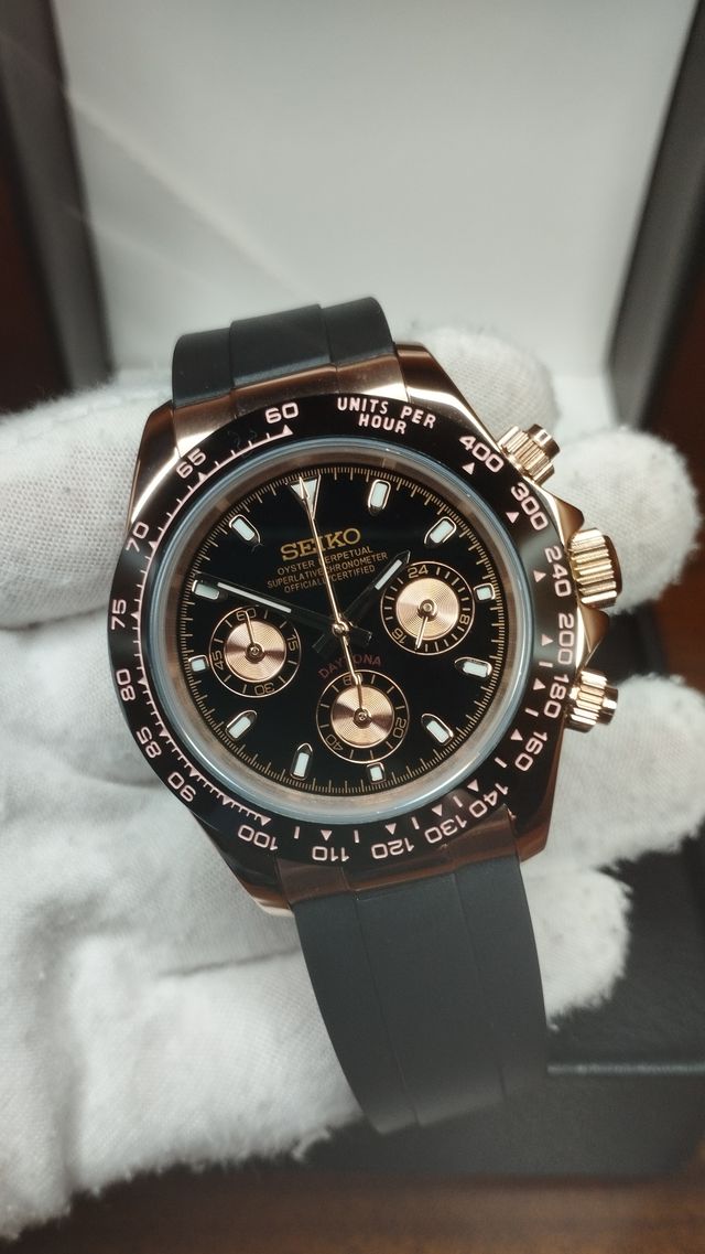 Reloj Seiko Mod Daytona Negro y Oro Rosa Rose Gold