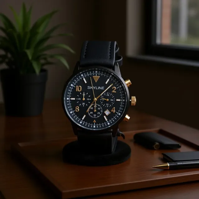 Reloj SKYLINE Clásico Hombre Negro y Dorado