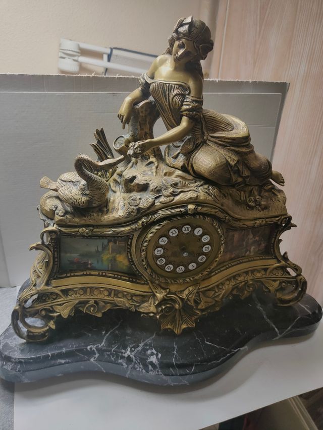 Detalles del productoImpresionante Reloj de Sobremesa Mármol y Bronce Macizo estilo LUIS XVIcon un peso de 16 kg MEDIDAS 47x42x22 cm. El Reloj es eléctrico no ha sido probado pero faltan manecillas por lo que sería para repaso, Entrega solo en mano