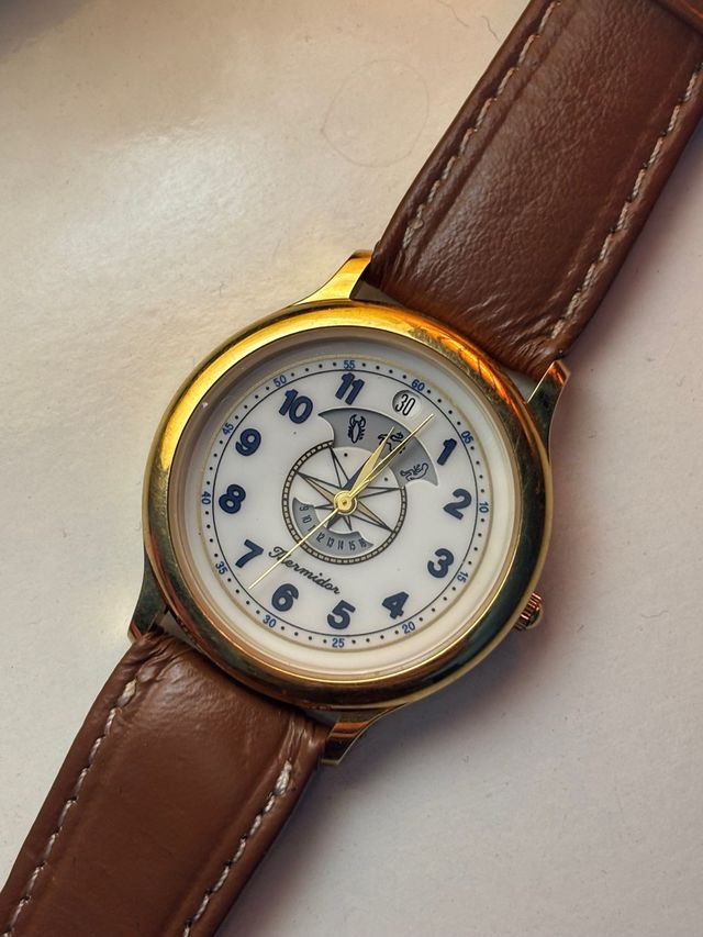 Es un reloj unisex de cuarzo de colección, probablemente de alrededor de 1985.