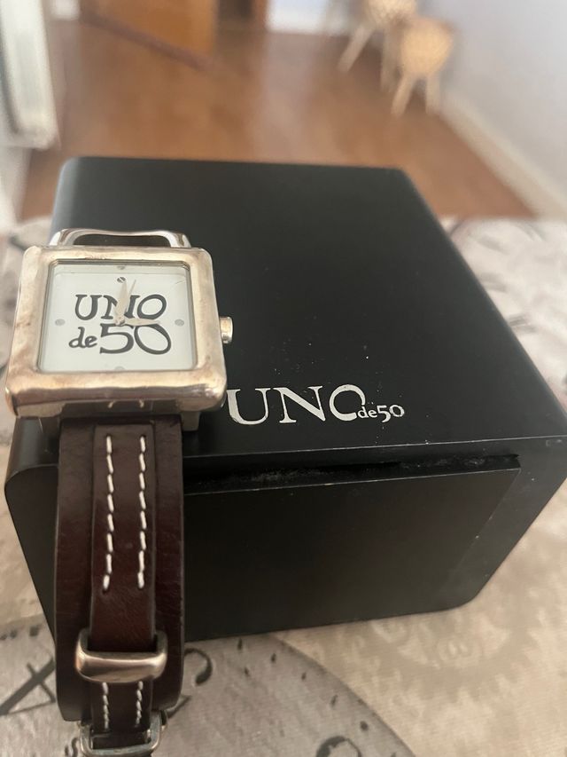 Reloj Uno de 50 Cuadrado Correa Marrón