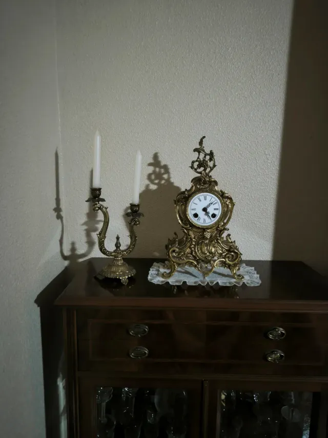 Reloj y candelabro de bronce