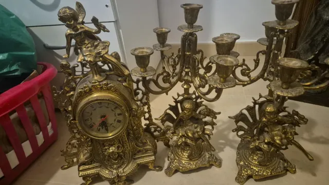 Detalles del productoConjunto de piezas decorativas antiguas de bronce, ideal para coleccionistas.