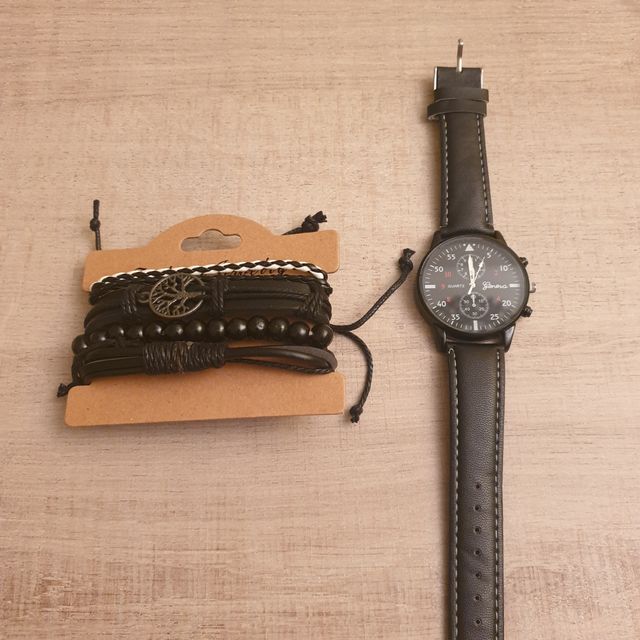 Reloj y pulseras cuero