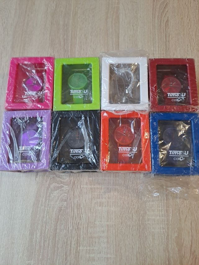 Detalles del productoColección de relojes Time out, se pueden vender sueltos a 5 euros la unidad, para el lote entero hago precio. Si te llevas dos 8 euros y tres 10 euros. Mas a consultar. Todos nuevos a estrenar en su caja, que además es hucha y se pueden poner unos encima de otros en plan legos.