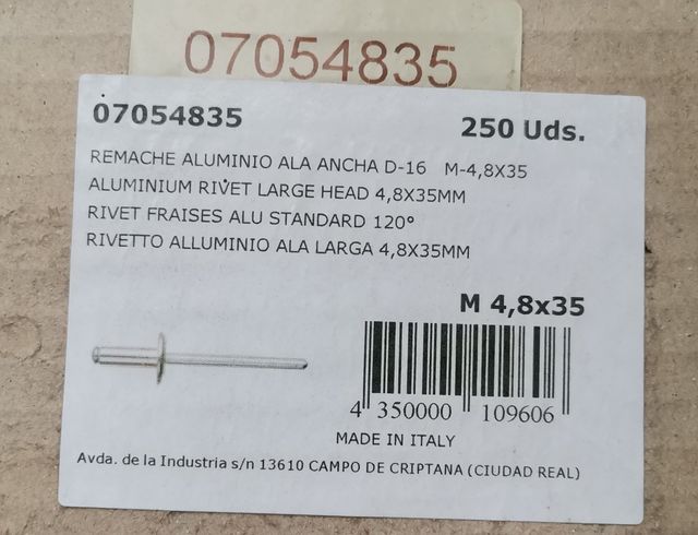 Remaches Aluminio Ala Ancha 4.8x35 (250 uds.)
