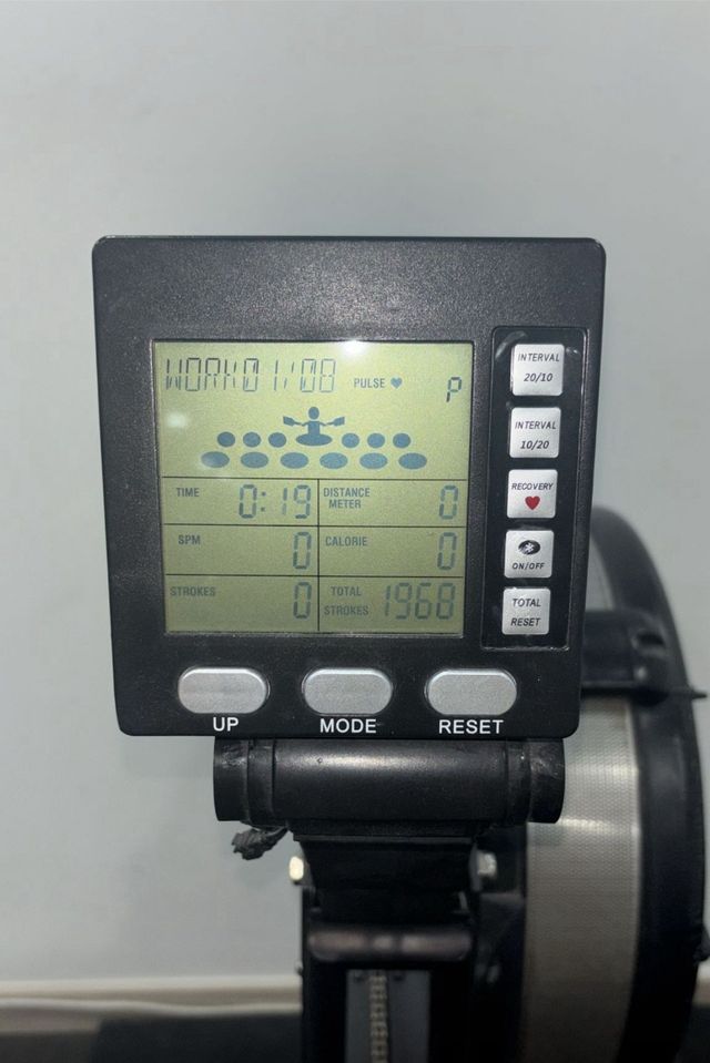Máquina de remo profesional Allfitpro. - Pantalla LCD con información de entrenamiento. - Estructura robusta para uso intensivo.