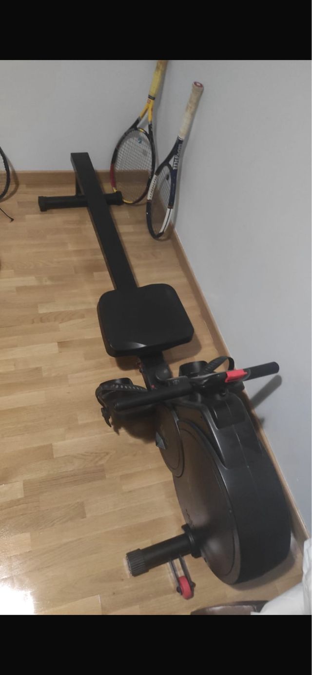 Máquina de remo Domyos FR0120. - Diseño plegable para fácil almacenamiento. - Asiento acolchado para mayor comodidad. - Pedales con correas ajustables.
