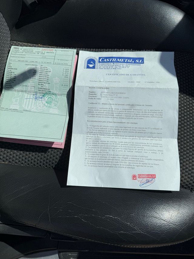 Remolque Castilmetal modelo REC, matriculado en 2004. - Certificado de garantía de 6 meses. - Documentación en regla. - Color verde.