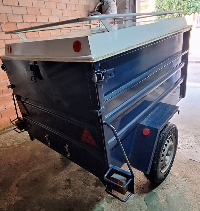 Detalles del productoRemolque para coche en buen estado, con freno de inercia y sistema basculante.