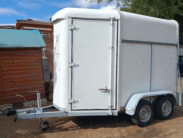 Detalles del productoVan en muy buen estado. ITV en vigor hasta ABR de 2026 .Ruedas al 90 % de vida útil. Suspensión de ruedas independientes, por medio de silenblocs.Guadarnés para dos equipos de montar completos con cabezadas y rendajes. Luz interior.Caben dos caballos de gran alzada.Dos ejes de 1000 kg cada uno y freno de inercia en las cuatro ruedas. Estructura de poliestar con refuerzos metálicos.Separador de caballos de acero galvanizado y plástico duro. Dispone de acolchados en los laterales.Suelo de goma antideslizante. Siempre guardado en garaje.