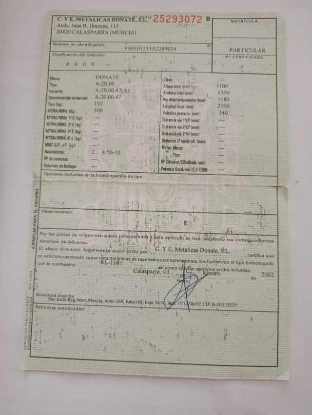 Remolque para coche de Metalicas Donate. - Modelo: A-20.00.47(A) - Tara: 102 kg - MMA: 300 kg - Neumáticos: 4.50-10 - Número de asientos: 2