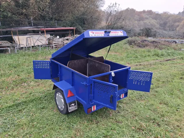 Remolque con freno de 1,50x1,20m de caja. Dispone de compartimentos interiores y puertas laterales tapa con amortiguadores, rueda de repuesto y rueda jockey, mejor ver