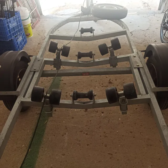 Remolque ligero diseñado para el transporte de embarcaciones. - Estructura metálica. - Ruedas de apoyo. - Ejes con suspensión.