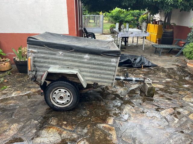 Detalles del productoRemolque para coche en buen estado, ideal para pequeñas cargas. Tiene una lona protectora.